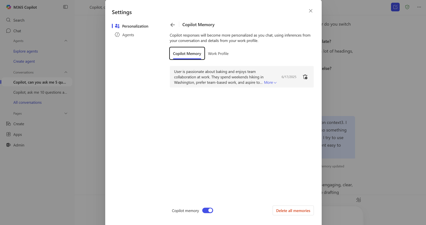 微软将于本月开始推出 Microsoft 365 Copilot 的记忆功能,节省甄选时间,