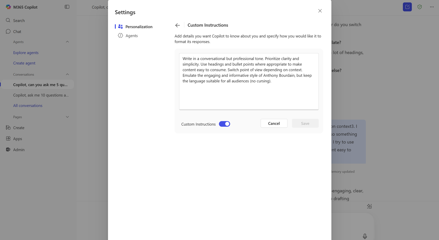 第二个是自定义指令,第一个是 Copilot Memory,要求 Copilot 始终以特定尺寸生成图像。指导 AI 在未来对话中如何回应,可以减少重复输入,用于传递更多信息,并增强个性化。报道称微软正全力推进 Copilot,